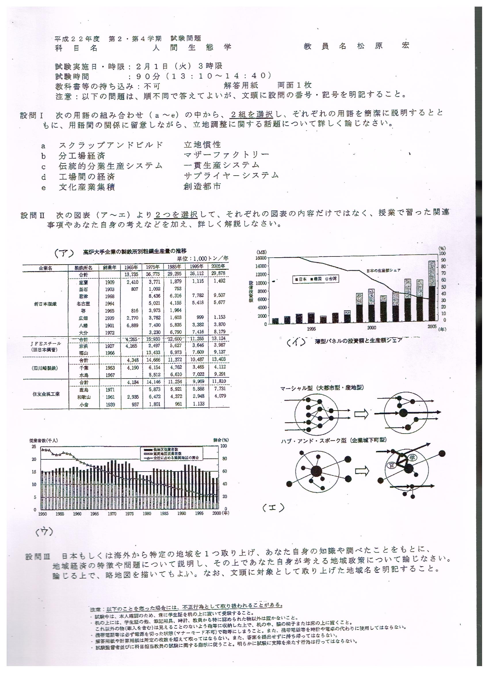 | タイトル | 2012冬 人間生態学 松原 過去問 | ||||